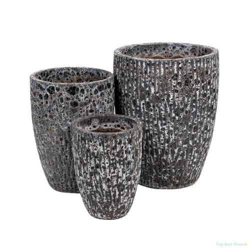 Brisbane Vase kerámia növénytartó szett antik savmaratott szürke 26x34-43x55cm S/3