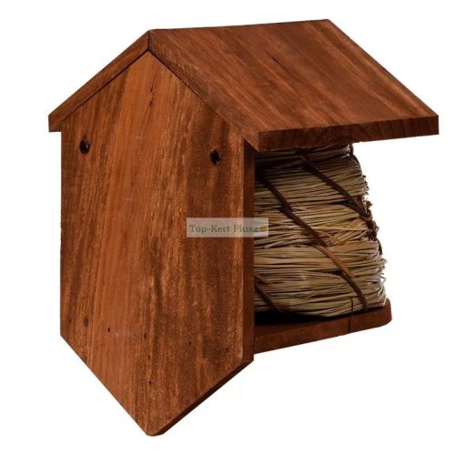 Méhkas alakú madárház, amely búvóhelyet és fedezéket ad a kert madarainak. Esősebb időben a tető védelmet nyújt, a nádból készült bejáraton az állatok kényelmesen megkapaszkodhatnak. Helyezzük el nyáron egy hűvösebb, árnyékos részen vagy télen a kert bármely pontján, a madarak pedig gyönyörű csicsergéssel hálálják meg a gondoskodást.